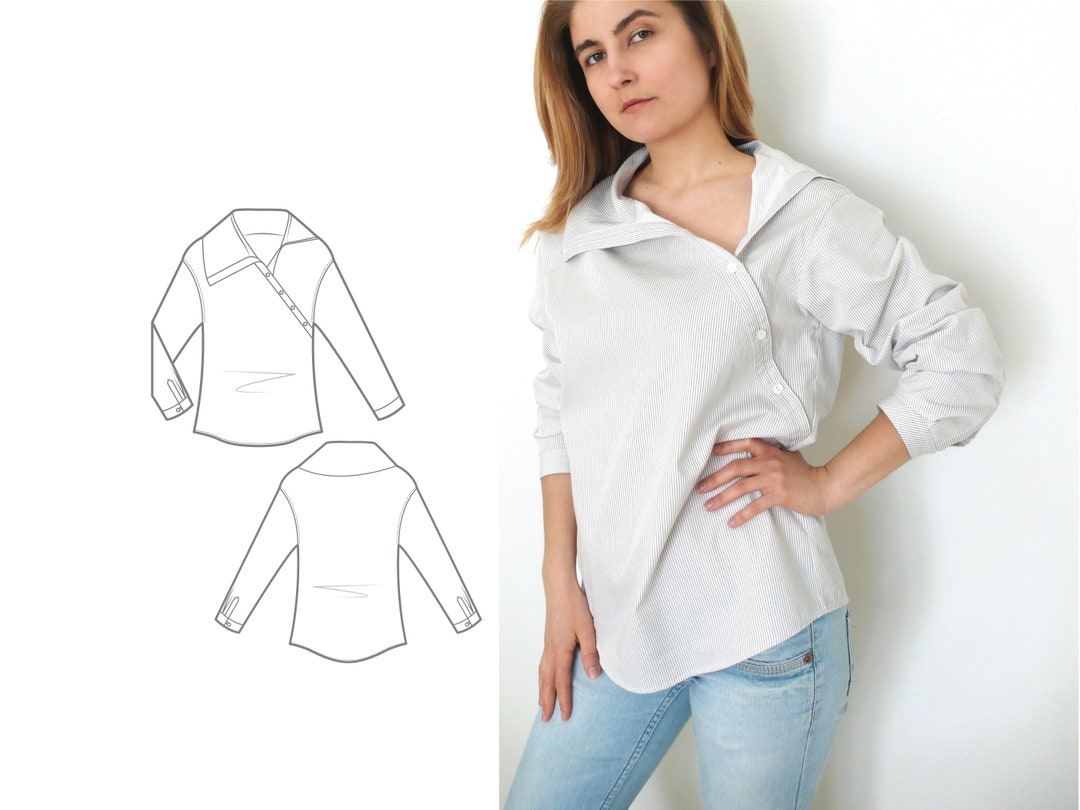 Asymmetric Collar Shirt Sewing Pattern Pdf N 32 Etsy